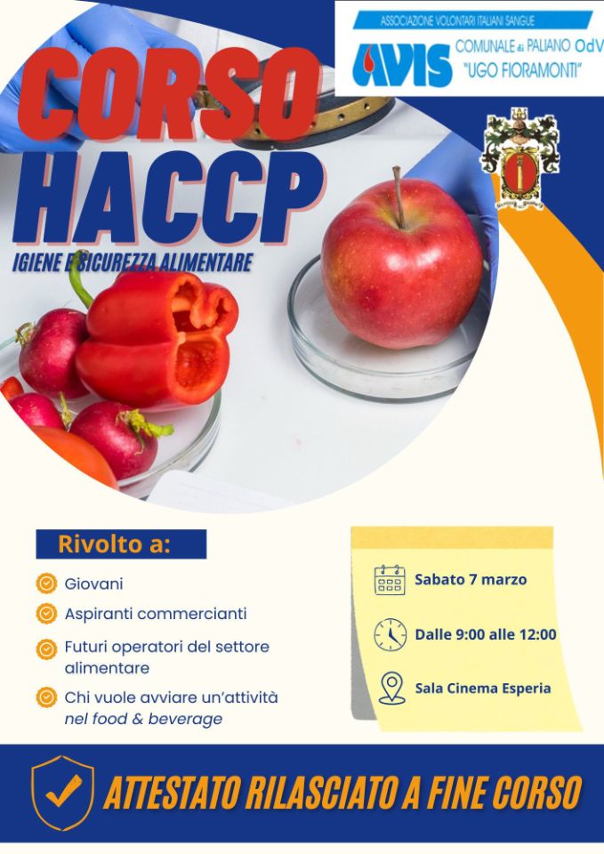 L’AVIS “Ugo Fioramonti” con il patrocinio del Comune di Paliano. organizza un corso HACCP dedicato all’igiene e alla sicurezza alimentare.