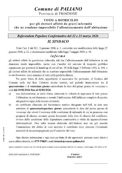 Voto a domicilio per per gli elettori affetti da gravi infermità che ne rendano impossibile l’allontanamento dall’abitazione