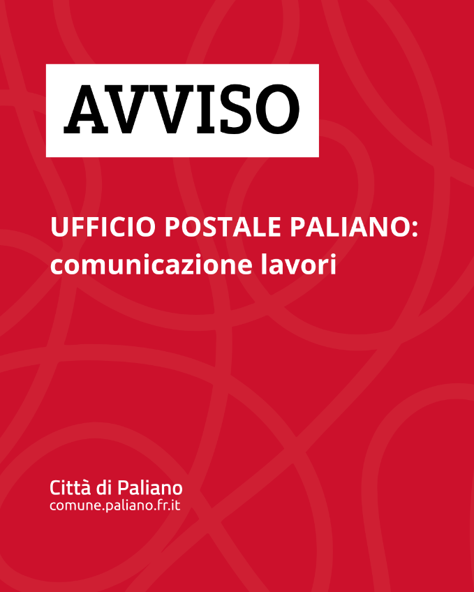 L'Ufficio postale di Paliano riaprirà in data 21/11/25, salvo imprevisti di cui si darà tempestiva comunicazione.