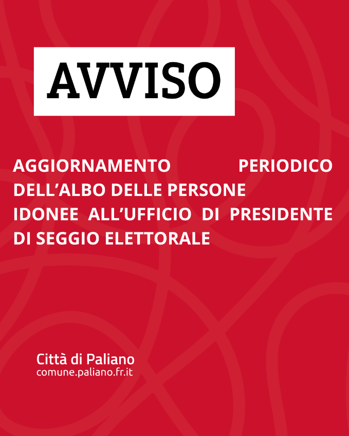 Si informa che è possibile presentare domanda per essere inseriti nell’Albo delle Persone idonee all’ufficio di Presidente di Seggio elettorale entro il 31 ottobre 2025 presso questo Comune .